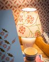 A handmade wallpaper lampshade, crafted in England using Sophie's original Geraniums paper.