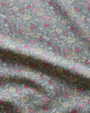 Fine Green by Edward Bulmer or Calke Green by Farrow and Ball are similar to the background of this cloth. Other colours you could match from the print include fresh limey greens like Boxington by Little Greene or Churlish by F&B. My suggested pinks are: Nicaragua by Edward Bulmer or deeper Radicchio by Farrow and Ball.