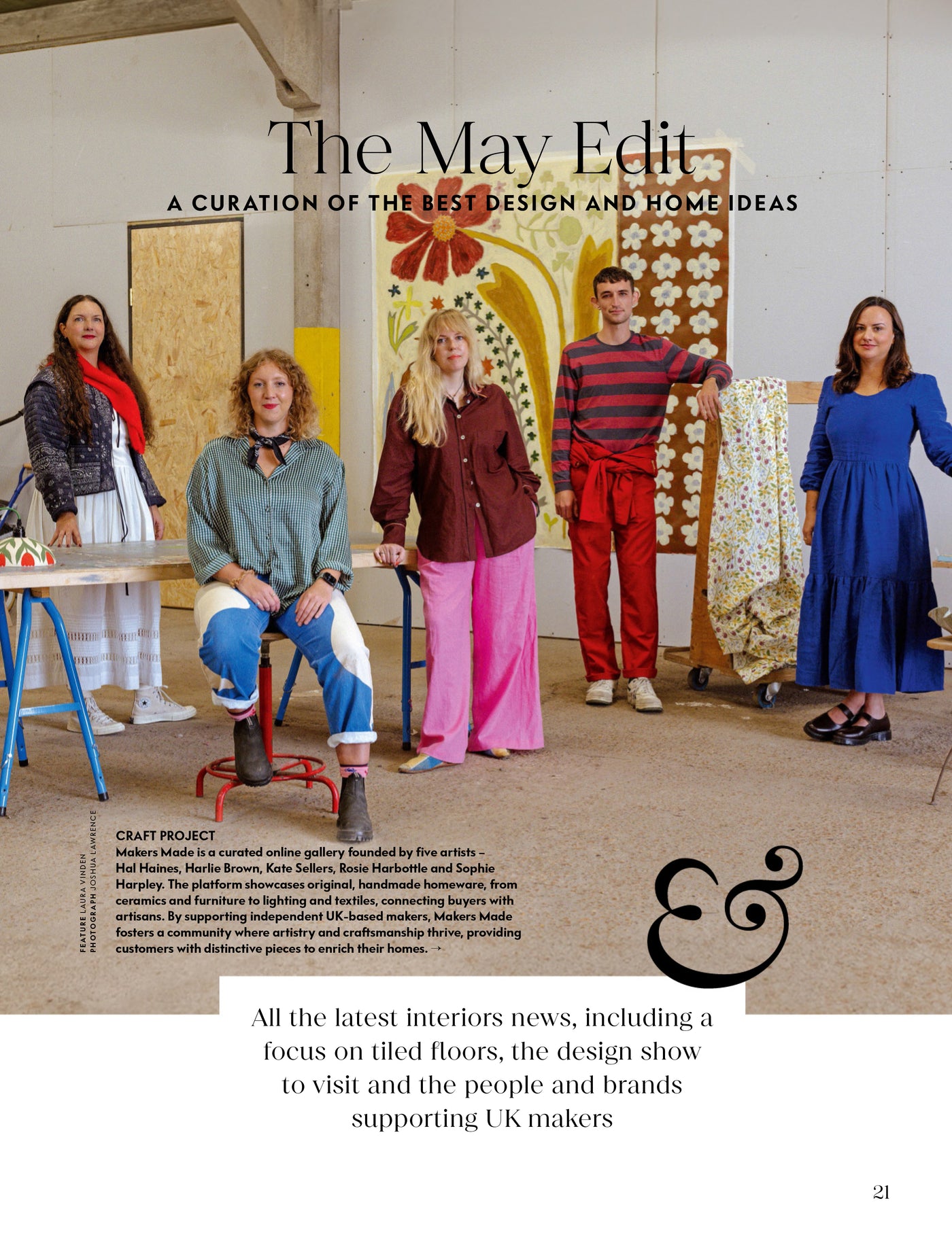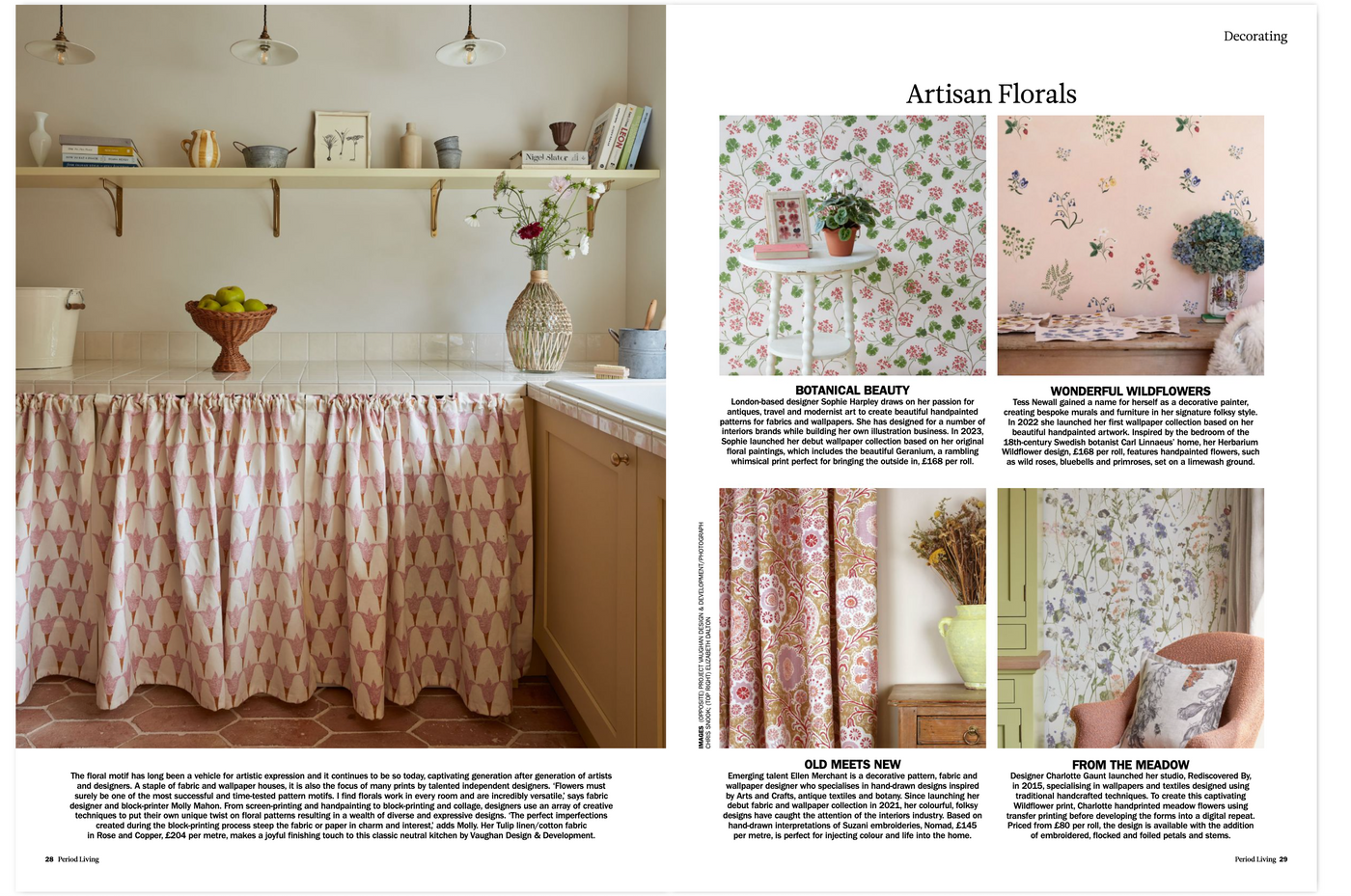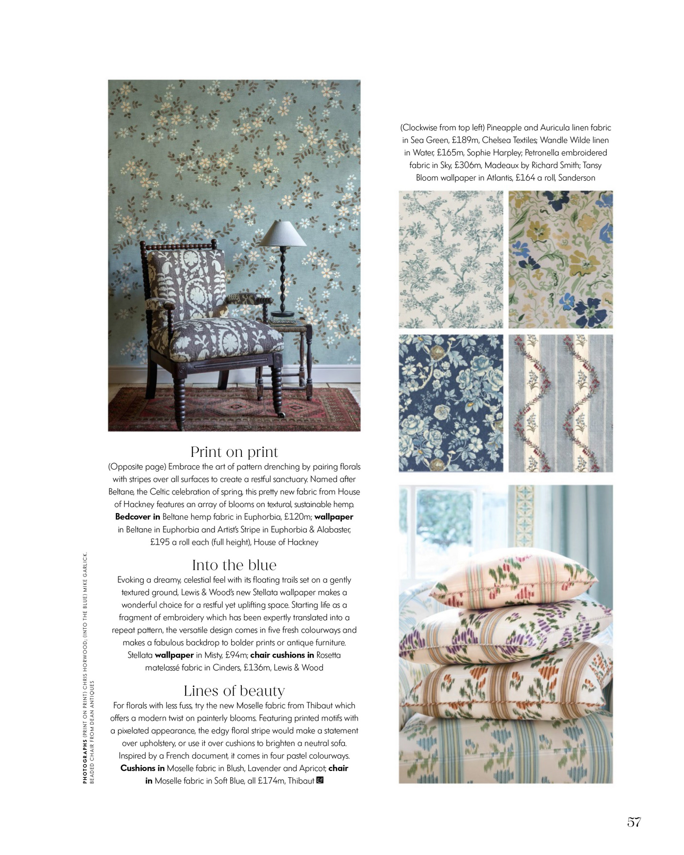 British Vogue, Country Homes, Country Living, Country & Townhouse, Elle Decoration, The English Home, The Financial Times, Grazia, The Guardian, Harper's Bazzar, Homes & Antiques, Homes & Gardens, House & Garden, The Independent, Period Living, Red, Sheerluxe, Stylist and The Telegraph.