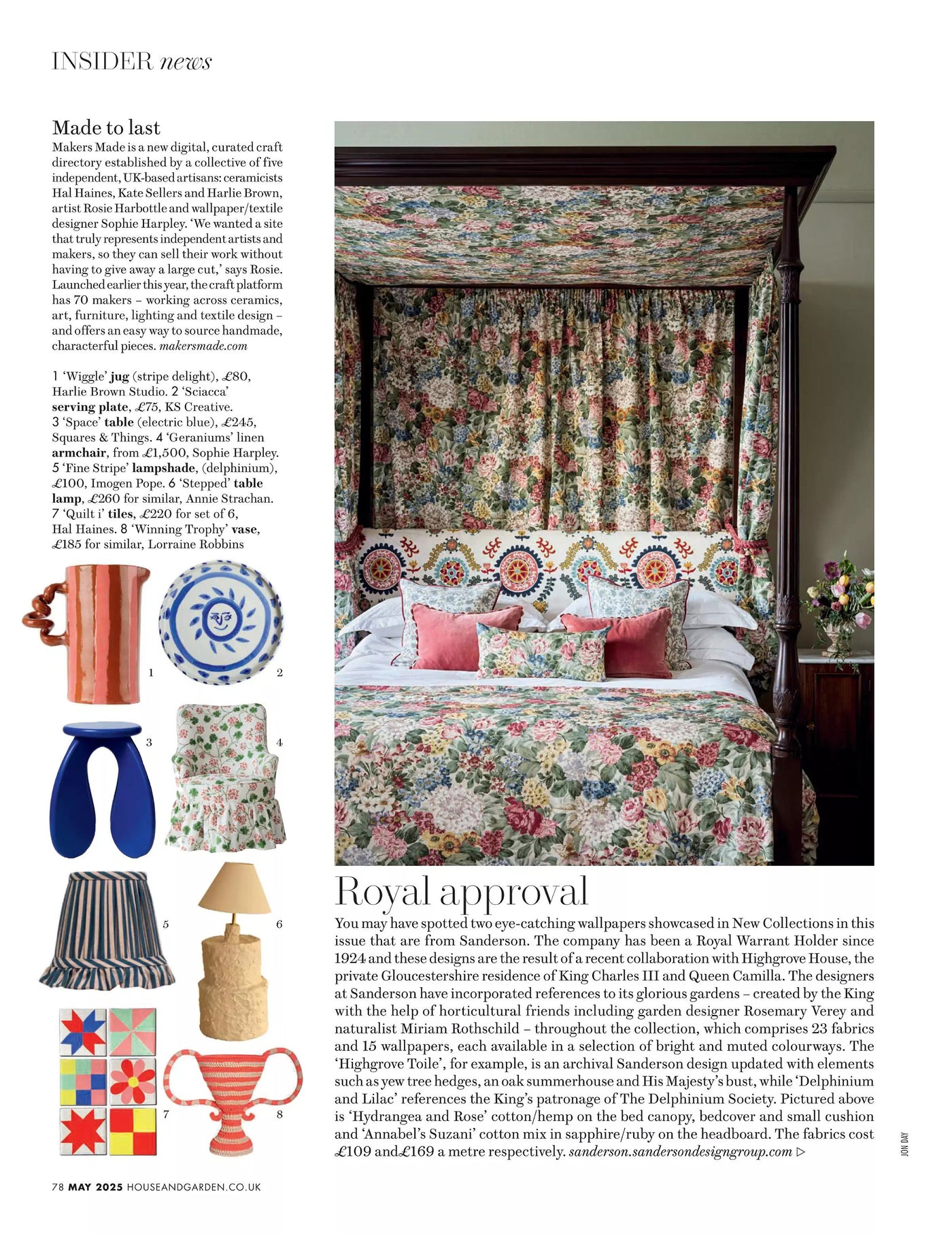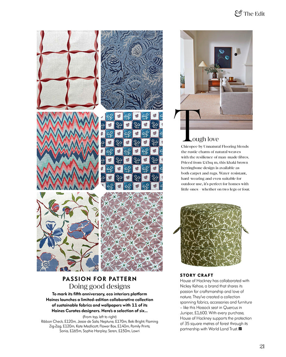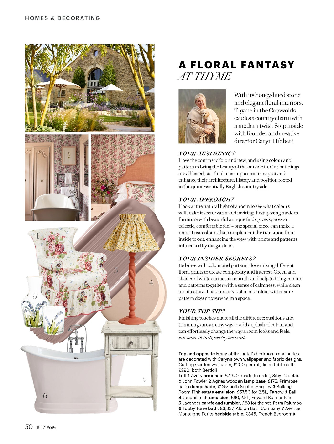 British Vogue, Country Homes, Country Living, Country & Townhouse, Elle Decoration, The English Home, The Financial Times, Grazia, The Guardian, Harper's Bazzar, Homes & Antiques, Homes & Gardens, House & Garden, The Independent, Period Living, Red, Sheerluxe, Stylist and The Telegraph.