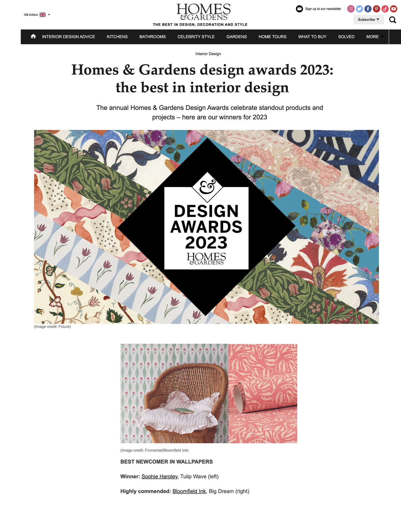 Sophie's designs have featured across the British press and over the years, with titles including;