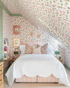 Geraniums have a long history as a favourite plant across Europe, both indoors and out. Pink and green are a classic colour combination and this painterly floral wallpaper by Sophie Harpley brims with carefree, Mediterranean charm.