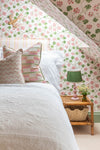 Bring the colour and joy of the outside in, with hand-painted geraniums rambling across your walls. This wallpaper creates a warm and characterful backdrop for any interior.